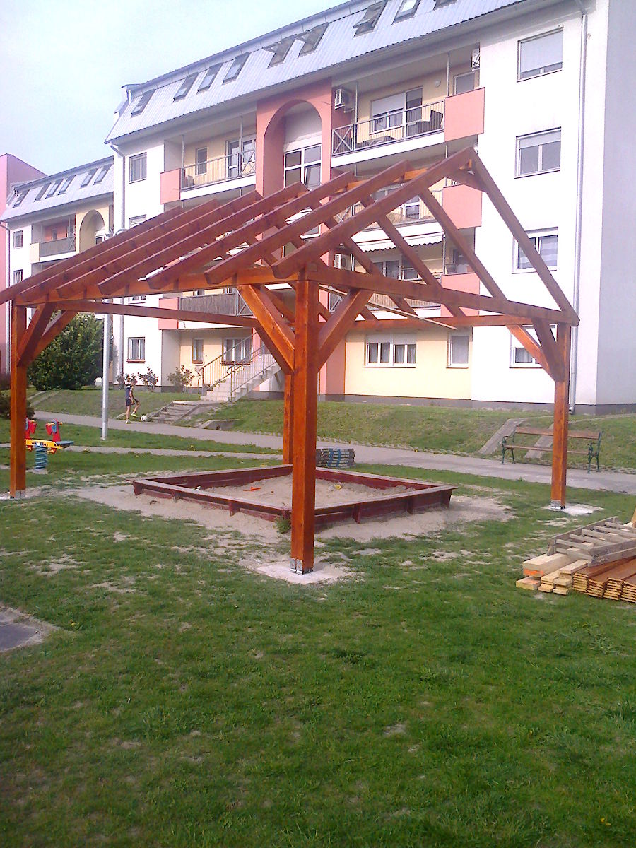 • a lakóközösség elképzelései alapján készült játszótéri homokozó fedése